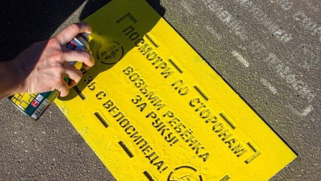 Основные сообщения, размещенные на тротуарах, содержали призывы: «Будь внимателен», «Держи ребенка за руку» и «Слезай с велосипеда». Эти и другие напоминания о правилах дорожного движения были размещены в местах массового скопления людей, а также в непосредственной близости от образовательных учреждений.