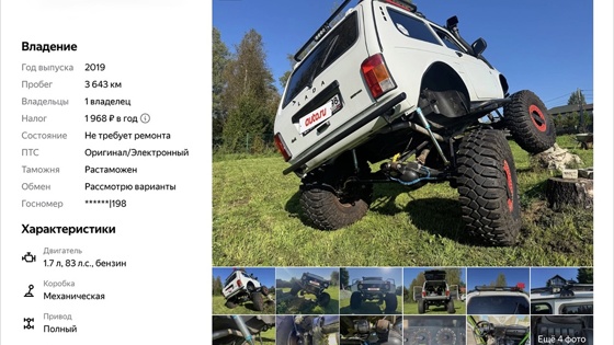 На одном из сайтов объявлений появился в продаже уникальный внедорожник - Lada 4x4 "Нива" 2019 года выпуска. Машина подверглась основательной доработке и превратилась в настоящий эталон для езды по бездорожью. По словам владельца, все изменения обошлись ему в 7,5 млн рублей.