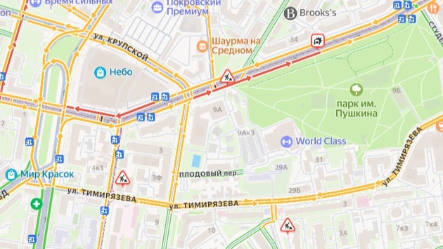 Огромная пробка образовалась на улице Белинского в Нижнем Новгороде из-за ДТП. Об этом свидетельствуют данные сервиса «Яндекс. Карты».