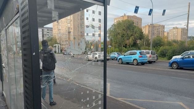Компания школьников каталась на самокатах по Московской площади, а когда начался дождь, укрылась внутри остановочного павильона. И, видимо, от нечего делать один из мальчишек решил расколотить стеклянную панель, уже покрытую трещинами. Надев защитный шлем, любитель острых ощущений несколько раз ударился головой о стекло. А после, войдя в раж, начал громить остановку своим самокатом.