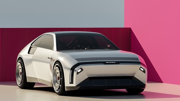 Концепт отличается чистыми геометричными линиями, расширенными колесными арками, центральными фиксаторами колес, интегрированным каркасом безопасности и элементами аэродинамики, напоминающими спортивную Skoda 130 RS. Визуальные решения, такие как скрытые фары, камеры вместо зеркал и новая световая подпись "Tech-loop", как на концепте новой "Октавии", отсылают к будущим серийным моделям бренда.