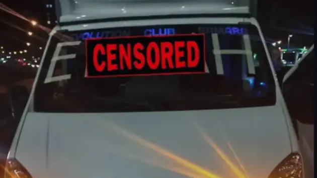 Во время рейда сотрудники ГИБДД остановили "Газель", на лобовом стекле которой была размещена надпись скотчем с использованием ненормативной лексики.