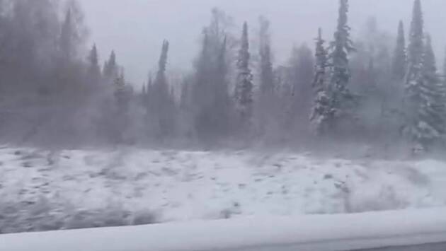 Очевидцы сняли на видео засыпанный снегом российский регион. Об этом сообщает Telegram-канал Shot.