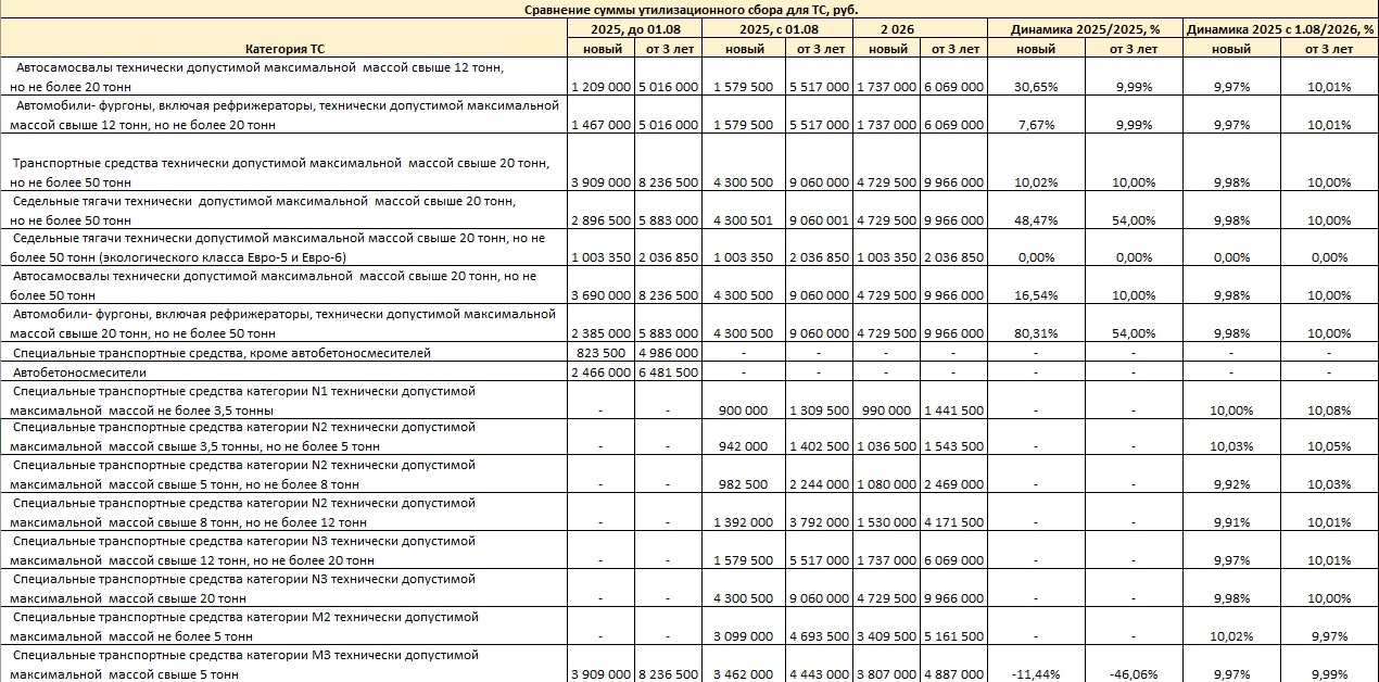Коэффициент на новые фургоны массой 12-20 тонн вырос с 9,78 до 10,53, на подержанные с 33,44 до 36,78. Размер утилизационного сбора увеличился с 1,5 млн до 1,6 млн для новых и с 5 млн до 5,5 млн для подержанных.