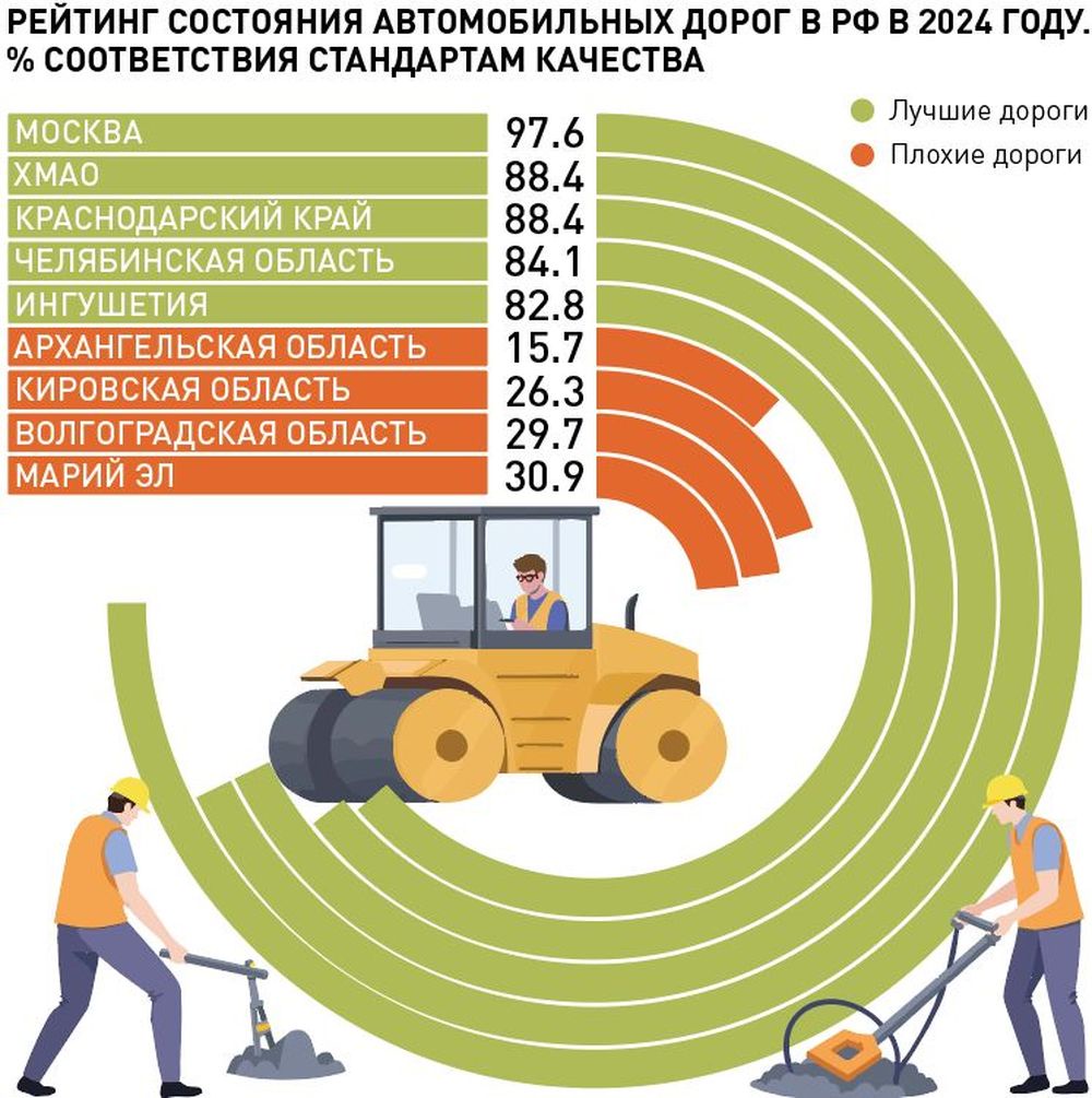 Самые качественные дороги в России на август 2025 года - в Москве, ХМАО, Челябинской области, Краснодарском крае, Ингушетии.