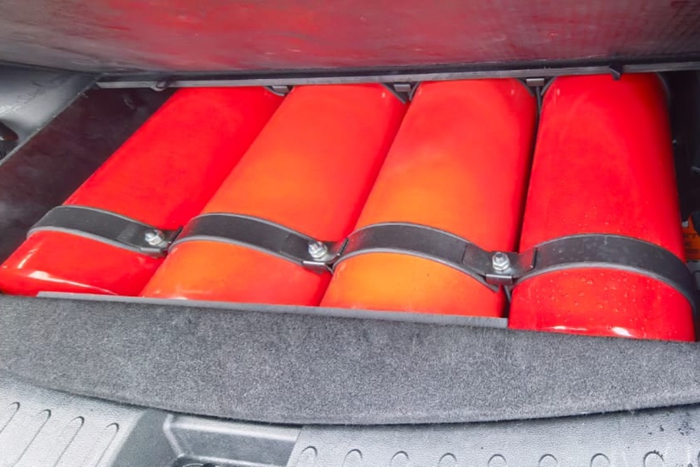 На оказавшихся в нашем распоряжении фото, прототип оснащен четырьмя баллонами под метан (CNG). Их расположили в нише под запасное колесо, что имеет свои плюсы: не скрадывается объем багажника.