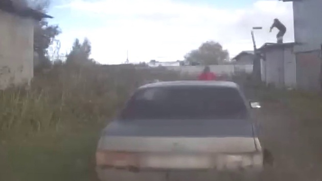 В это время один из очевидцев, занимавшийся ремонтом крыши собственного гаража, проявил сознательность и метнул в беглеца полено. Водитель споткнулся и упал. Благодаря этому сотрудники правоохранительных органов быстро задержали нарушителя.