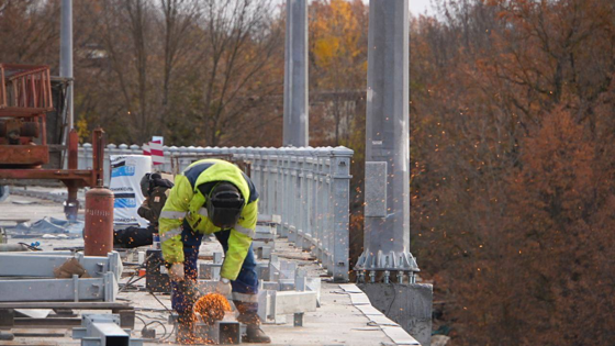 В рамках обновления ведётся масштабная реконструкция всех элементов моста. Рабочие укрепляют 13 опор, полностью заменяют дорожное покрытие, устанавливают новую систему освещения и современный водоотвод. На данный момент подрядчик выполняет укладку верхнего слоя мостового полотна.