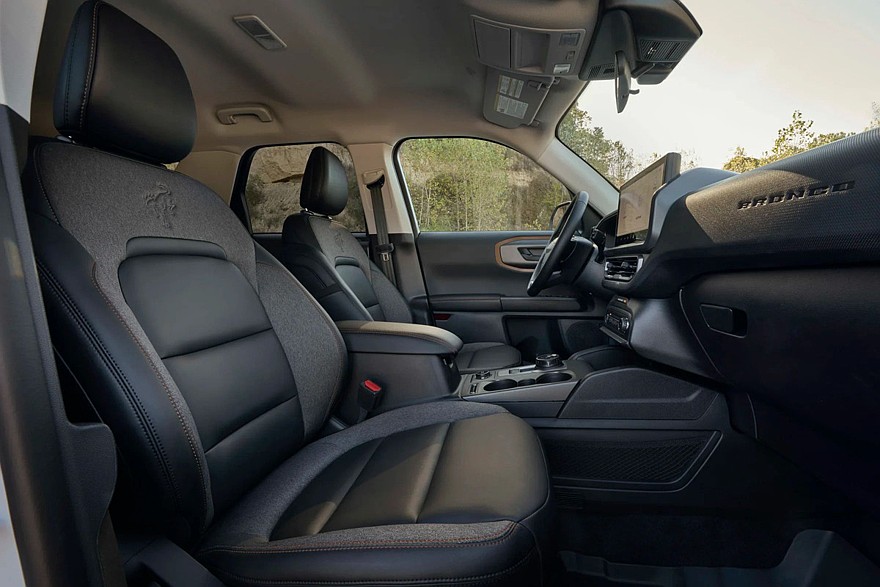 Есть изменения и в интерьере: Ford Bronco Sport Bronze получил бронзовые вставки на передней панели, дефлекторах вентиляции, центральном тоннеле и дверных картах. Также этот оттенок можно увидеть на напольных ковриках и чехле, предназначенном для багажного отделения. Кроме того, обивка сидений и рулевого колеса получила контрастную прострочку.