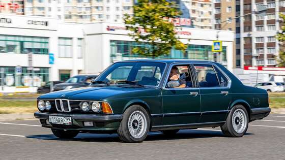Опубликованы история и видео редкой BMW 735i 1986 годаBMW семейства Е23 уважали во всем мире – в том числе и у нас. Хотя и прозвали «акулой». Прекрасно помню, какое впечатление на неизбалованных советских людей в начале 90‑х годов произвели первые приехавшие к нам подержанные седаны BMW семейства Е23 – «семерки» первого поколения. В наших глазах они были пришельцами из другого мира, инопланетянами. У того, кто познакомился с «акулой» три десятка лет назад, она вызывает особые чувства. Эта машина рождает сильные эмоции. Новичок Бундеслиги Компания BMW еще со второй половины 60‑х годов потихоньку заходила на поляну, где прочно обосновался Mercedes-Benz. Баварцы плавно добавляли к относительно компактным, но технически интересным моделям более солидные седаны. А в 1977 году вообще замахнулись на святое – представили седан длиной 4860 мм и с колесной базой 2795 мм, новой 7‑й серии. Автомобиль был лишь немногим меньше седана Mercedes-Benz семейства W116, который выпускали с 1972 года. А до новой модели из Штутгарта, W126, оставалось еще два года. Так что «семерку» явили миру вовремя. Фирменный баварский стиль Облик BMW E23 не был революционным. Фирма нащупала новый дизайн еще в начале шестидесятых и относилась к нему бережно. И, кстати, правильно делала. Фирменный баварский стиль – это уже традиционные «ноздри» решетки радиатора, четыре круглые фары, обратный наклон передка. Характерный клюв или, при небольшой фантазии, – верхняя челюсть, и побудил наших острословов назвать эту «семерку» «акулой». Действительно похожа! Машина совсем не выглядит тяжеловесной и пафосной, скорее – изящной. Баварская стилистика настойчиво подчеркивала: это большой, просторный седан, но характер у него особенный. В 1978 году продали чуть больше 34 тысяч седанов семейства Е23. До Мерседеса пока было далеко: в тот год покупателей нашли более 71 тысячи машин W116. Но ведь для «семерки» это было только начало. ПЕРВАЯ СЕДЬМАЯ BMW семейства Е23 выпускали с 1977 по 1986 годы. Седаны оснащали шестицилиндровыми двигателями рабочим объемом 2,8–3,4 л, в том числе с турбонаддувом, мощностью 170–252 л. с., четырех-, пятиступенчатыми механическими и трех-, четырехступенчатыми автоматическими коробками передач. В Германии изготовили 285 029 автомобилей, 16 848 машин собрали в ЮАР. В последний год производства изготовили 11 303 автомобиля. Из них 7411 BMW 735i в Германии и 29 в Южной Африке. Геоэкономика BMW 735i, с которым я знакомлюсь, поздний – 1986 года. Это типично немецкий автомобиль – не только в том смысле, что Бавария – в Германии. Столь же очевидно, что машина делалась для немецкого рынка. Дело не только в том, что все таблички в салоне на немецком: это символ практичности, рациональности, если угодно – умения считать честно заработанные деньги и тратить их лишь на необходимое. Которого, как считают многие, достаточно. По нынешним меркам «семерка» в такой комплектации выглядит как минимум странно. Под капотом – рядная «шестерка» рабочим объемом 3,4 л, развивающая очень солидные по тем временам 218 л. с., а коробка передач – пятиступенчатая механическая. Зато мотор – с первой в мире серийной электронной системой впрыска Bosch Motronic. Но переключать передачи вручную первый покупатель этой «семерки» большим трудом не считал. Никакой кожи! На сиденьях красивый, мягкий, уютный велюр. Правда, тут же отделка прекрасным шпоном. Положение все-таки обязыва