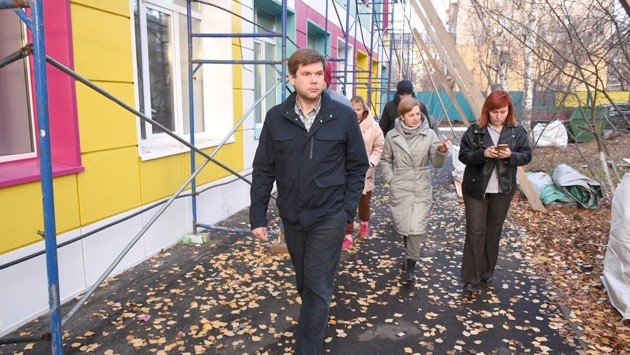 Врио главы Оренбурга Альберт Юмадилов проверил, как идет ремонт детского сада в Промышленном районе города.