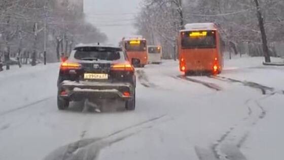 Неожиданный снегопад парализовал движение транспорта в городе. На улицах возникают массовые ДТП — так, на склоне в Ростовском переулке Ильинки самосвал улетел в кювет. Не справляется и общественный транспорт: из-за гололеда автобусы не могут подняться в горку. Особую трудность представляет улица Волочаевская.