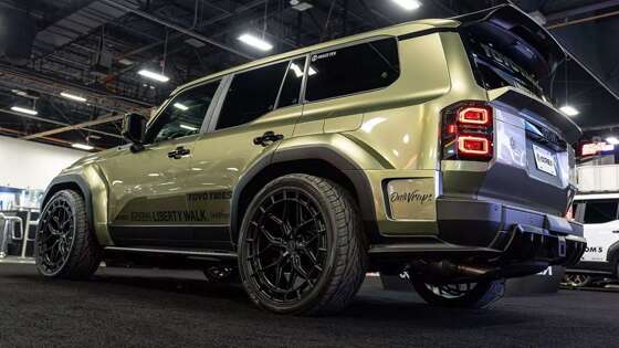Liberty Walk и Alpharex показали обвес для Toyota Land Cruiser 250 на SEMA 2025На выставке SEMA 2025, проходившей с 4 по 7 ноября в Лас-Вегасе, тюнинг-ателье Liberty Walk в партнерстве с фирмой Alpharex презентовали уникальную модификацию внедорожника Toyota Land Cruiser 250 (Prado). По данным портала CarScoops, стайлинг-комплект включает переработанный передний бампер с увеличенными воздухозаборниками наподобие G-Class от Mercedes, встроенные дневные ходовые огни, декоративную накладку на капоте, широкие крылья, диффузор, массивное антикрыло, спойлер на двери багажника, обновленный задний бампер и новую оптику. Внешний вид автомобиля дополняется новыми 24-дюймовыми коваными легкосплавными дисками марки Vossen, которые «обуты» в всесезонную резину Toyo. Подвеска была занижена, что придает автомобилю более агрессивный вид. Несмотря на значительные изменения во внешнем дизайне, под капотом остался стандартный 2,4-литровый гибридный двигатель i-Force Max с мощностью 331 л.с. Трансмиссия – восьмиступенчатая автоматическая, полный привод. Полный набор тюнинга доступен по цене 8800 долларов, тогда как комплект колес обойдется в 14 850 долларов. Некоторые элементы можно приобрести по отдельности; например, передний бампер стоит 2420 долларов, а антикрыло – 880 долларов.