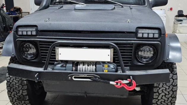 Самый доступный из этих трех вариантов оценен в 2,5 миллиона. Это "Нива" 1996 года выпуска, которую уже нельзя назвать просто "Нивой". Под капотом установлен дизельный двигатель QD32 от японских внедорожников. Вся трансмиссия заменена на агрегаты от Toyota Hilux Surf: механическая коробка передач, раздаточная коробка, оба редуктора. Задний мост оборудован самоблокирующимся дифференциалом LSD. Кузов усилен, установлен трубчатый каркас безопасности, подвеска и лонжероны подготовлены для тяжелого бездорожья.