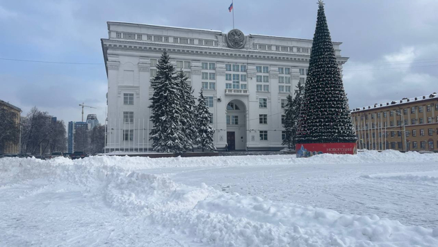 В областном центре Кузбасса на площади Советов происходит форменное безобразие – лежат кучи снега, а на расчищенном пространстве виднеется гололед.