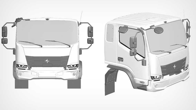 На патентах - обновленный вид кабины, для которого характерны иные решетка, зеркала, бампер, фары, а также новый лого в виде звезды.