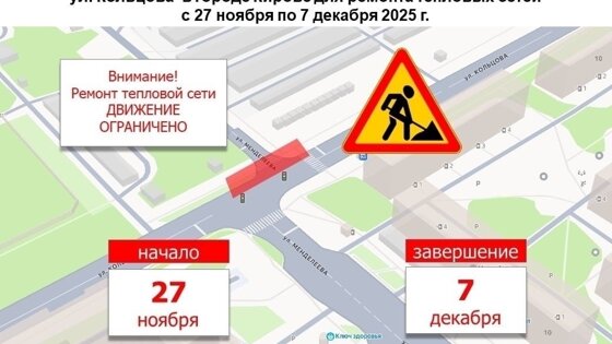 С 27 ноября по 7 декабря в Кирове на пересечении улиц Менделеева и Кольцова запланированы работы по ремонту тепловых сетей, специалисты проведут замену участка изношенных трубопроводов. В связи с этим по улице Менделеева в направлении улицы Луганской будет временно ограничено движение транспорта, сообщили в Кировском филиале «Т Плюс».