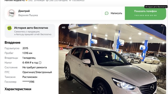 На одном из автомобильных агрегаторов появилось заманчивое предложение о продаже абсолютно новой Mazda CX-5 2015 года. Как уверяет владелец из Екатеринбурга, за 10 лет владения с момента покупки у официального дилера кроссовер проехал чуть больше 1000 км и оставшуюся часть времени хранился в теплом гараже, а в салоне до сих пор остался запах новой машины.