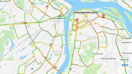 Серьезные пробки образовались в Нижнем Новгороде 10 декабря. Заторы на дорогах наблюдаются во всех районах. Об этом свидетельствуют данные сервиса «Яндекс. Пробки».