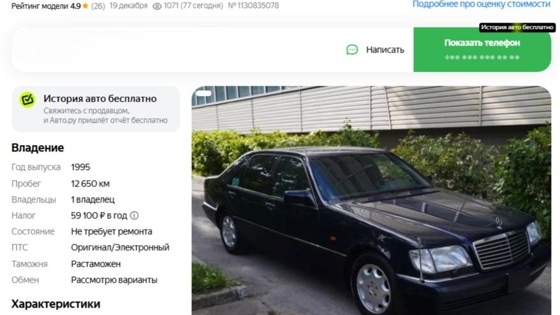 Спрос на машины из золотой эпохи автомобилестроения неуклонно растет, и каждая новая "капсула времени" из 80-х или 90-х в отличном состоянии становится настоящим сокровищем. На одном из популярных сайтов объявлений в России появился такой раритетный экземпляр - представительский седан Mercedes-Benz W140 в модификации S600 с пробегом всего 12 000 километров.