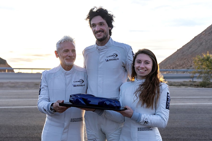 Одноместный электрический электромобиль Renault Filante Record 2025 с дизайном в стиле 1920-х и с батареей от серийного кроссовера Renault Scenic E-Tech проехал на одной зарядке более 1000 км менее чем за 10 часов со средним расходом энергии 7,8 кВт·ч/100 км.