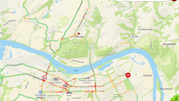 Особенно тяжко на момент подготовки новости на проспектах Кузнецком, Советском, Ленина, Октябрьском и Притомском. Также загружены улицы Красноармейская, Дзержинского, 50 лет Октября, Соборная и многие другие.
