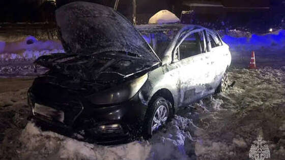 В Ижевске автомобиль с человеком воспламенился на ходу