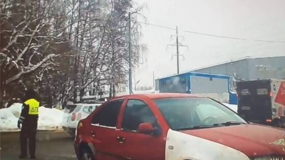 На кадрах видно, как полицейский пытается остановить внедорожник, но водитель дважды таранит служебный автомобиль МВД. Силовик стреляет и приказывает нарушителю остановиться и выйти из машины.