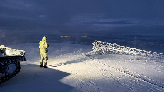 В Мурманской области, где ликвидируют аварию на линиях электропередачи, обещают похолодание. Сейчас в регионе действует режим чрезвычайной ситуации. После обрушение пяти опор ЛЭП в регионе без электричества остаются около 75 тысяч человек. Ремонтным бригадам приходится работать в суровых погодных условиях. Обрыв линий произошел в тундре. Корреспондент «МИР 24 Виталий Никулин следит за ситуацией.