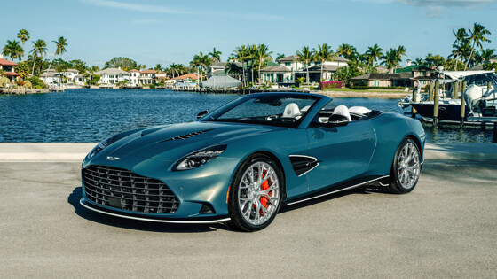 Aston Martin Vanquish Volante третьего поколения дебютировал в марте прошлого года, он является одним из самых мощных в мире переднемоторных автомобилей с открытым верхом. 5,2-литровый битурбомотор V12 собственной разработки Aston Martin на этой модели выдаёт 835 л.с. и 1000 Нм, вся мощность передаётся на задние колёса через 8-ступенчатый гидромеханический «автомат» ZF и самоблокирующийся дифференциал. Первую «сотню» двухтонный кабриолет набирает за 3,4 с, максимальная скорость — 345 км/ч.
