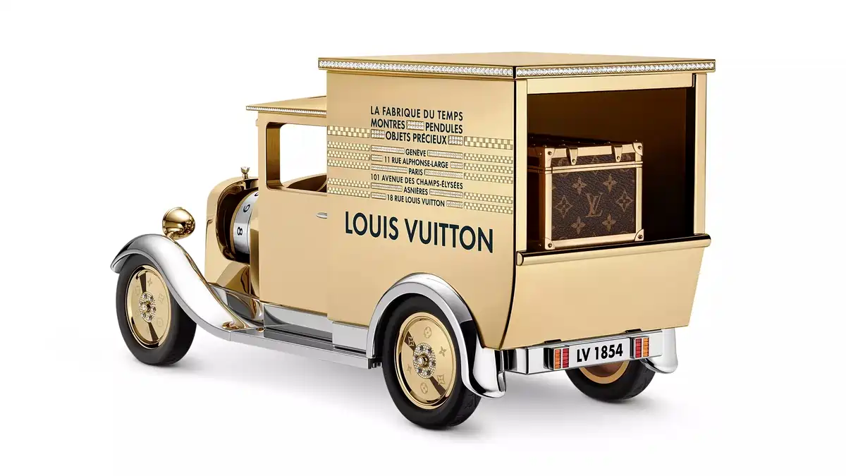 Аксессуар создан совместно со швейцарской часовой мануфактурой L’Epée 1839. Машина-часы в точности повторяет исторический фургон Citroen B10 1920-х годов, который использовался для доставки товаров LV.
