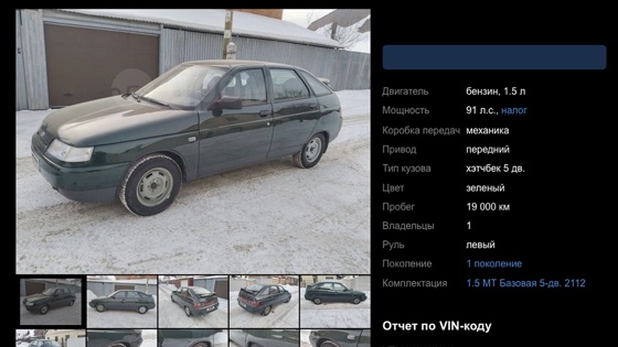Как выяснила "Российская газета", в Челябинске выставили на продажу ВАЗ-2112 в идеальном состоянии. За автомобиль 2002 года выпуска, который проехал 19 тысяч км, просят не так и дорого - 600 тысяч рублей.