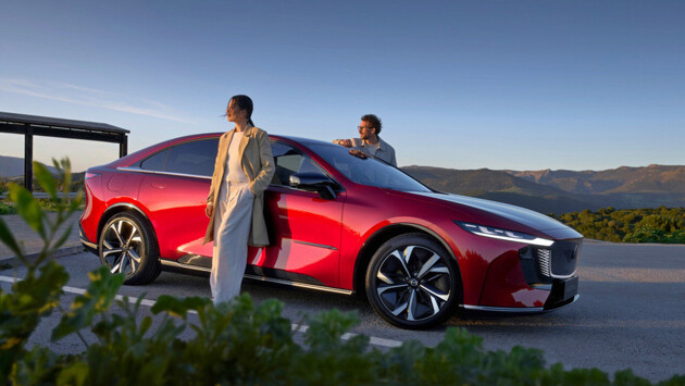 В Австралии Mazda 6e представлена в двух комплектациях. В списке оборудования базовой GT значатся: упомянутые спойлер и дисплеи, панорамная крыша, электропривод багажной двери, обивка из искусственной кожи, подогрев руля и передних сидений (кресла – еще и с вентиляцией), трехзонный климат-контроль, беспроводная зарядка, камеры кругового обзора, адаптивный круиз-контроль, системы автоторможения и удержания в полосе движения. Версия Atenza – это натуральная кожа и вставки из искусственной замши.