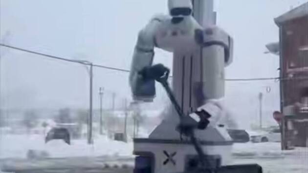 Робот-дворник вышел на расчистку заснеженных улиц и попал на видео