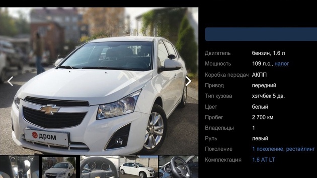 В РФ выставили на продажу Chevrolet Cruze с минимальным пробегом
