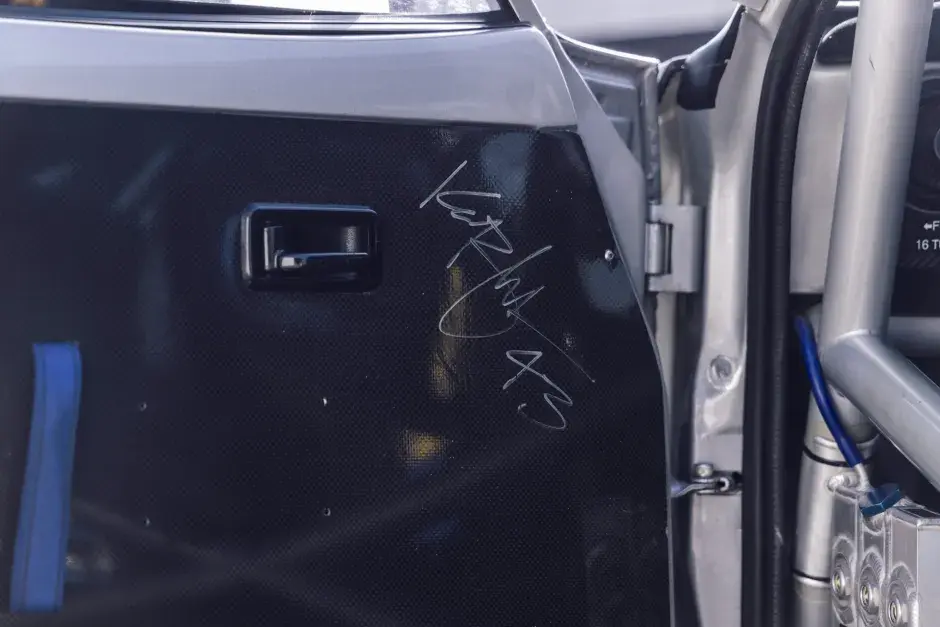 Масса автомобиля составляет всего 906 кг. Салон полностью утилитарен: два ковша Recaro, новая приборная панель, руль Sparco и подпись самого Кена Блока на дверной карте.