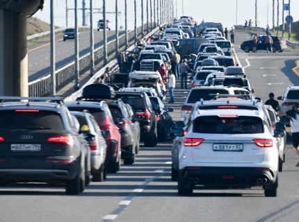 Более 1100 автомобилей ждут проезда по Крымскому мосту