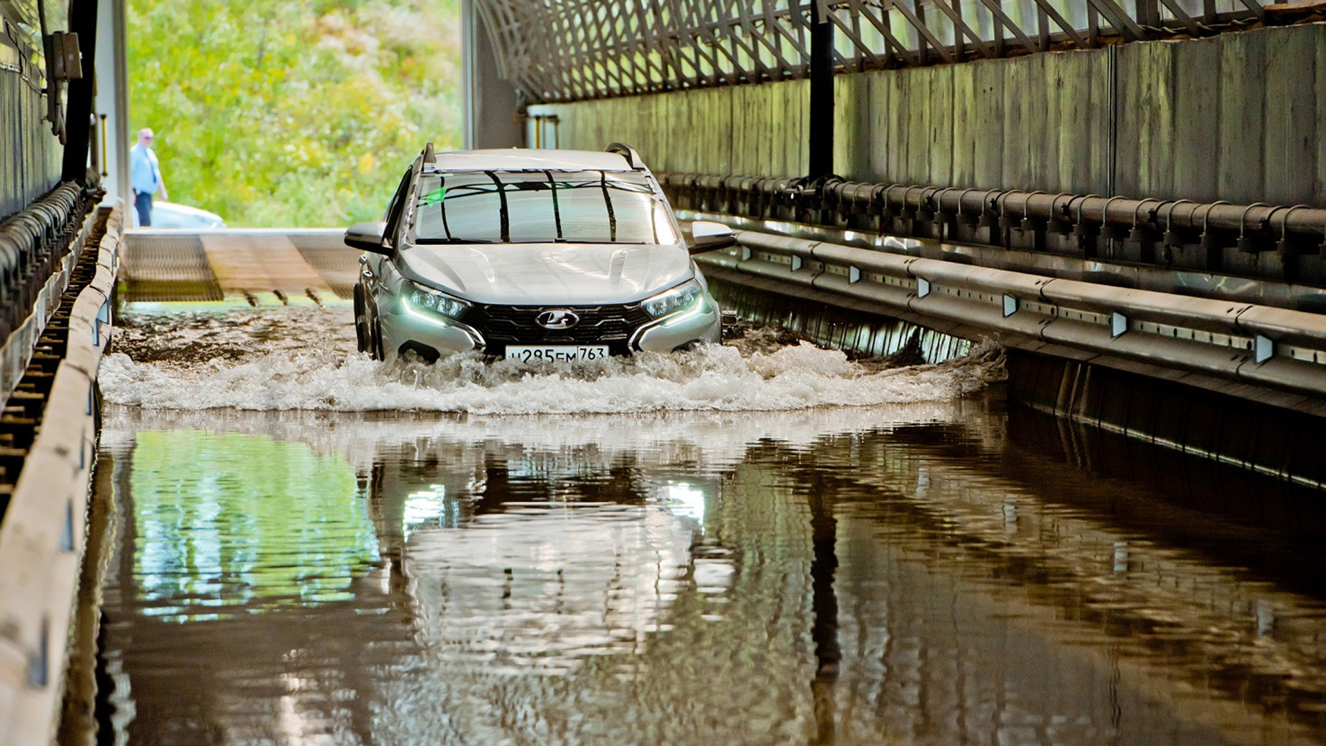 Испытали Lada Iskra и водой: в новой дождевальной камере на автомобиль обрушили поток воды. Ещё была смоделирована мойка: как из обычного садового шланга, так и на мойке под высоким давлением и в автоматической установке.
