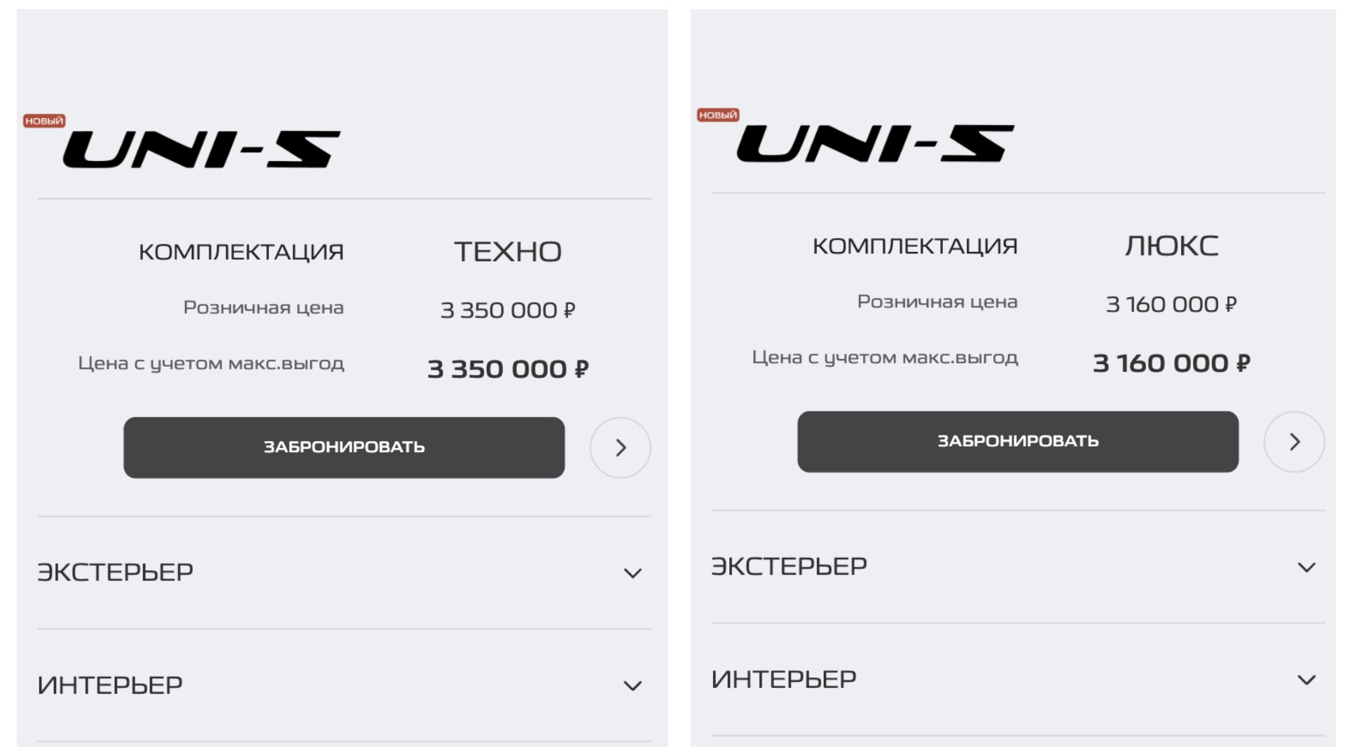 В базовом варианте оснащения новый Changan Uni-S будет стоить 3 160 000 рублей без учёта различных скидок и программ поддержки. Кроссовер в богатой комплектации обойдётся в 3 350 000 рублей. Для сравнения, переднеприводный Uni-S стоит в России стоит 3 179 900 и 3 209 900 рублей в комплектациях «Техно» и «Техно +» соответственно.