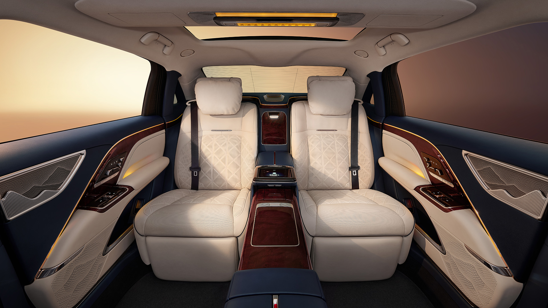 В интерьере используются редкие сорта натурального дерева и кожа Nappa. Сиденья заднего ряда уровня получили функции многоточечного массажа, вентиляции и индивидуальные настройки наклона спинок. В дополнение к многослойному остеклению имеется интеллектуальная система активного шумоподавления, что обеспечивает полную тишину в салоне.