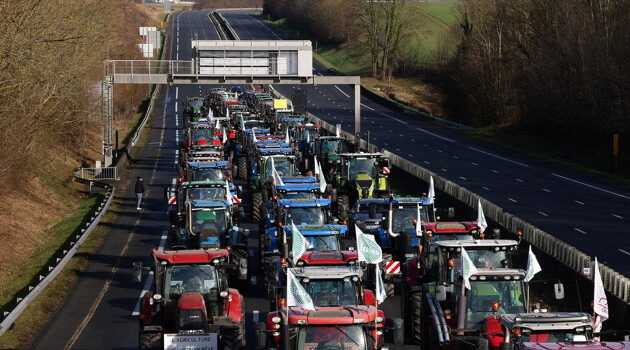 В Париже протестующие фермеры на тракторах начали блокировать шоссе