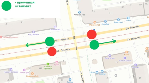 На выходные в Ижевске перенесут трамвайные остановки «Банк Зенит» на улице Ленина