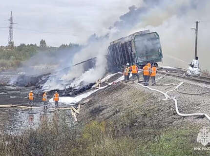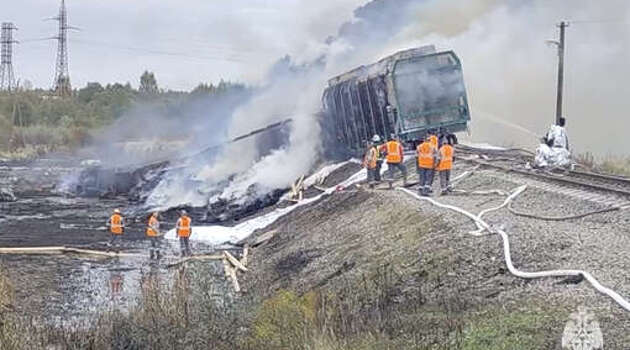 18 вагонов с бензином сошли с рельсов при ДТП под Смоленском, начался пожар