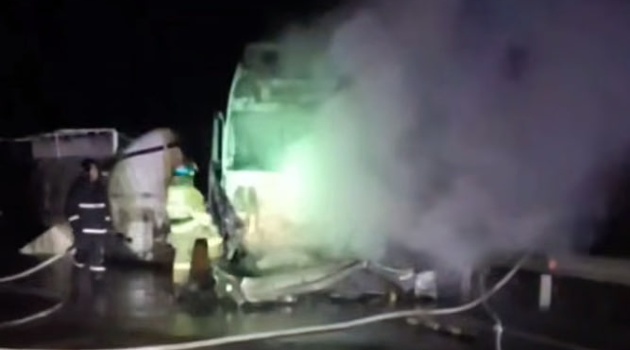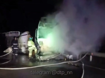 Цементовоз загорелся на трассе в Нижегородской области из-за ДТП