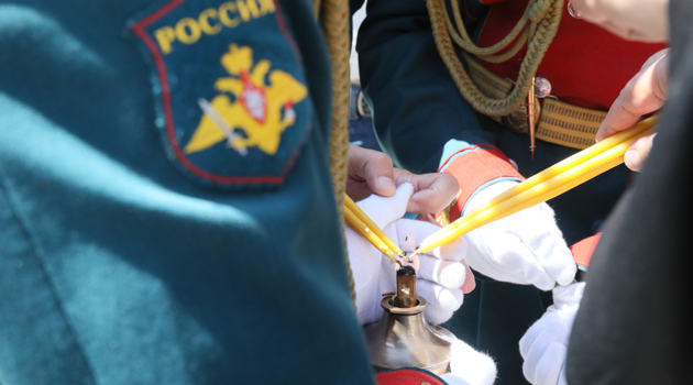 В Главный Храм ЮВО передана частица Вечного огня из Пискаревского мемориального кладбища в Санкт-Петербурге
