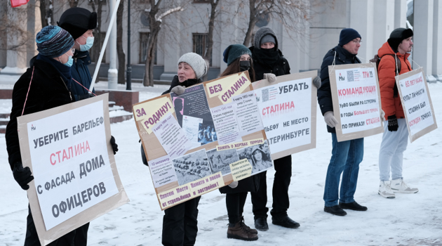 В Екатеринбурге устроили митинг против возвращения барельефа Сталина на Дом офицеров
