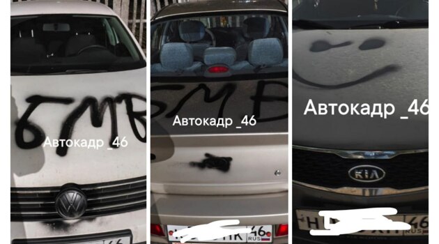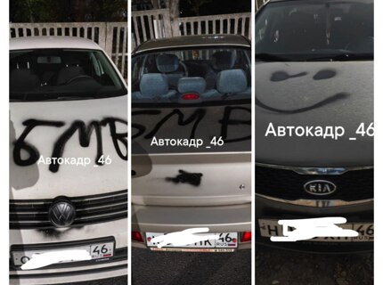 На парковке областной больницы в Курске вандалы разрисовали около 20 машин краской
