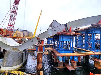 В Петербурге на Большом Смоленском мосту начали сборку пролетных строений