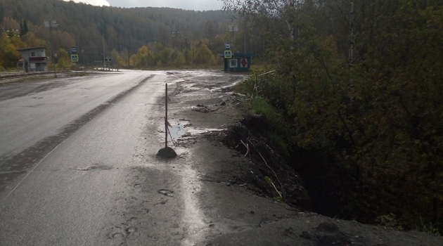 Обрыв глубиной в три метра создал опасность рядом с остановкой в кузбасском городе