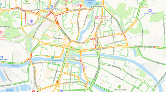 Проспект Мира, Дзержинского и два участка на Горького: Калининград в четверг днём снова встал в пробках